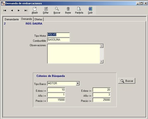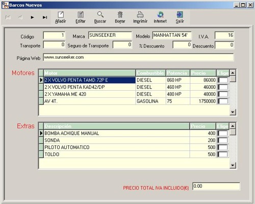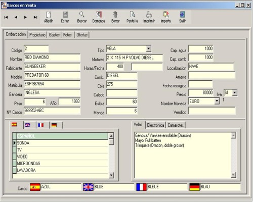 al barco, pudiendo importar desde la base de datos de embarcaciones