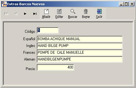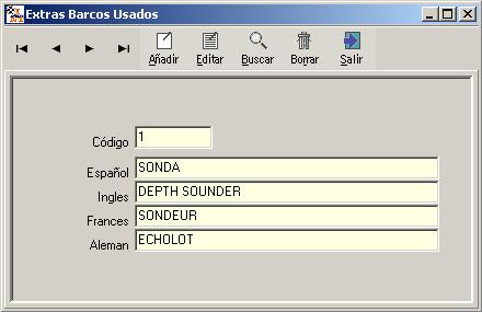 el registro de un barco en concreto. Las opciones de EXTRA